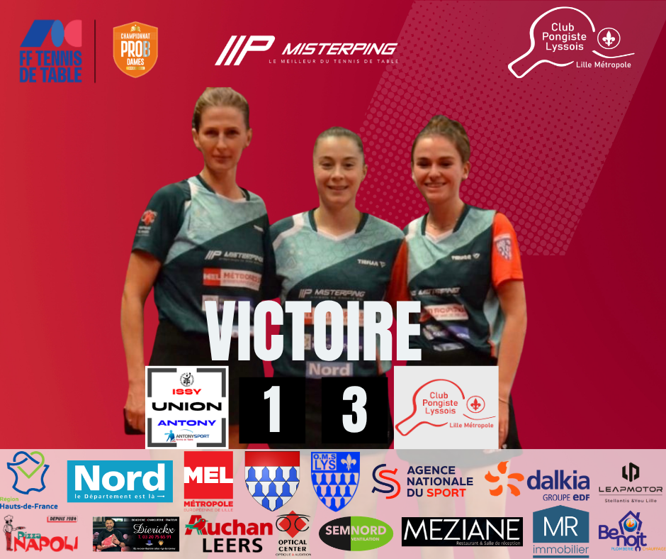 Les Fleurs de Lys sur le toit de la Pro B ! Auteur d'une prestation magistrale, le Club Pongiste Lyssois Lille Métropole s'est imposé 3-1 face à l'Union Issy/Antony lors de la 10ème journée. Portées par une Olga Vorobeva impériale, nos joueuses reprennent la tête du championnat avec 32 points. Un succès capital avant de retrouver notre public le vendredi 10 avril pour le tant attendu derby face à Leers.
