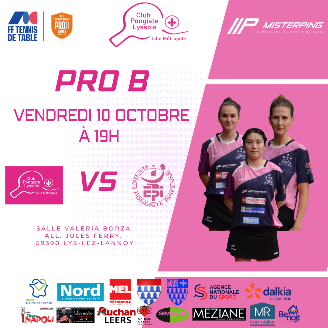Le Club Pongiste Lyssois Lille Métropole vous donne rendez-vous pour la 3ème journée de la Phase 1 du Championnat par équipes ! Un week-end riche en matchs qui s'étend du vendredi 10 au dimanche 12 octobre.
