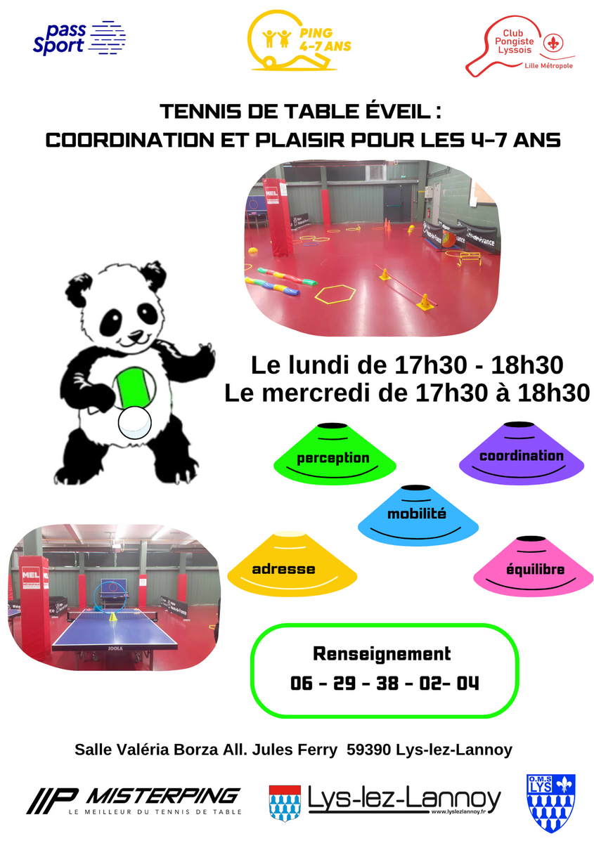 Le Club Pongiste Lyssois Lille Métropole est ravi de lancer son programme dédié aux plus jeunes : le TENNIS DE TABLE ÉVEIL, conçu spécifiquement pour les enfants de 4 à 7 ans.